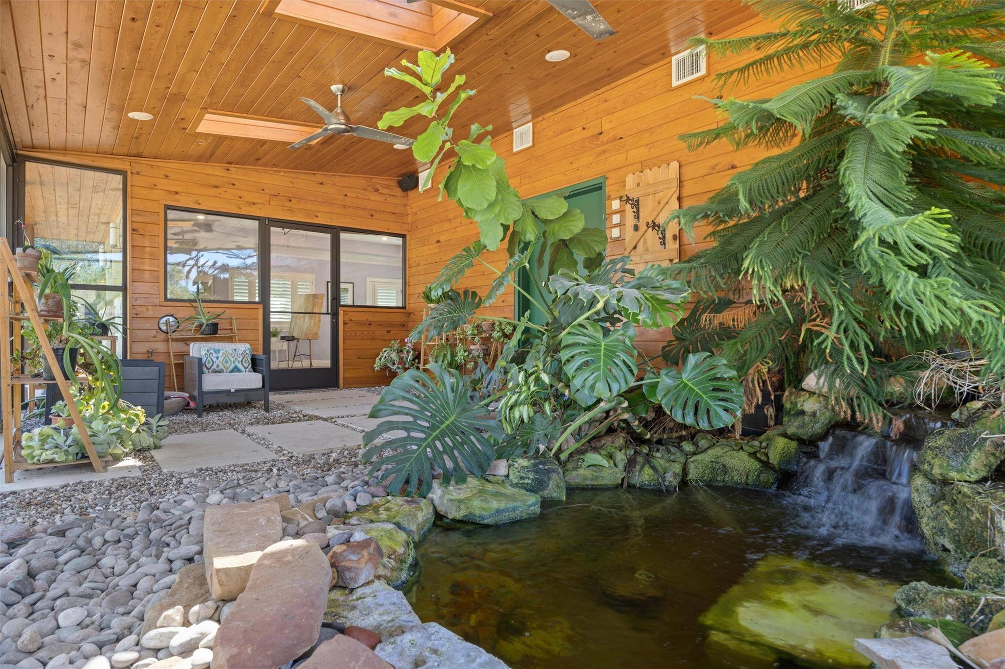 *A STANDOUT FEATURE *detached, commercially built ADU, fully conditioned. It includes a 1/2 bath/ bar/refrigerator/custom wood shutters/surround sound, making it perfect as a private retreat, home office, gym, studio, or hobby/game space. Attached to the ADU is a conditioned solarium ideal for interior gardening or plant cultivation, along with a cart garage perfect for equipment or recreational storage.