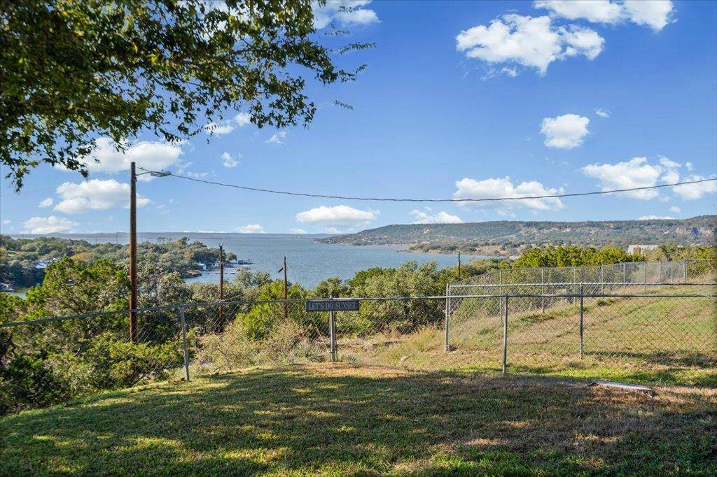This stunning single-story home in Burnet, Texas, sits on over half an acre of serene land with breathtaking views of Lake Buchanan. The property is accentuated by several trees and features full gutters, setting the tone for a peaceful retreat. Inside, the open and airy layout boasts tile flooring, abundant natural light, and high beamed ceilings, creating a sense of spaciousness and tranquility. The living room is a cozy haven, featuring a ceiling fan, a sliding glass door leading to the outdoors, and a beautiful floor-to-ceiling stone fireplace. The bright kitchen is equipped with track lighting, a breakfast bar, granite countertops, and stainless steel appliances, making it perfect for culinary delights. A sunny dining area is nearby, with great natural light, a ceiling fan, and multiple doors leading to the outdoor space. The primary bedroom is a serene escape, with a high ceiling, ceiling fan, closet space, and an en-suite bathroom featuring a framed mirror and a deep soaking tub/shower combo. The secondary bedrooms offer comfortable quarters, with high ceilings, ceiling fans, and closet space. The backyard is a true oasis, with a wrap-around patio, a deck offering peaceful hill country views, a concrete pond, and a unique stone waterfall feature. A convenient outdoor shed adds to the functionality of the fenced backyard and provides space for all of your outdoor tools and toys. But that's not all - this property also offers lake access and a boat launch, included with the $100 annual HOA fee, which also covers access to play and picnic areas. And with lots that stretch from Cty Rd 130 to the lower loop of 130, you can enjoy unparalleled privacy with no neighbors at the back of the property. With its proximity to Lake Buchanan and all its amenities, this home offers the perfect blend of relaxation and recreation.